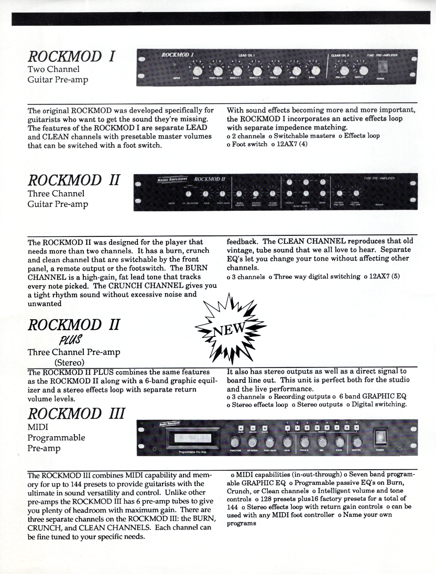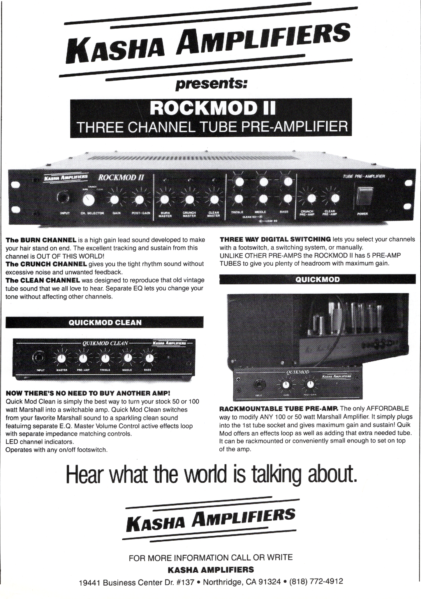 The Kasha Amplifiers Rockmod I Preamp, introduced in 1988, is the world’s first high-gain, 3-channel tube preamp. Pioneering a new era of guitar tone, it offered distinct channels for crystal-clear cleans, soaring leads, and bone-crushing distortion. Praised by professional musicians and featured on countless gold and platinum albums, the Rockmod I cemented its legacy as a groundbreaking innovation in amplifier design.